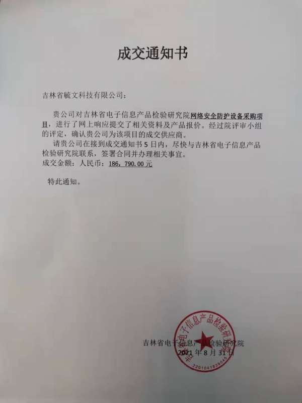 成交通知书