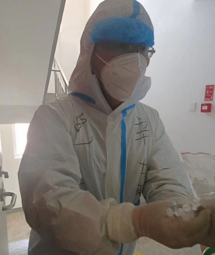 李凯发扬“我是党员我先上”的精神,闻令而动,冲在最前线。虽然不是专业的医护人员,但他直面病毒风险,奔赴抗疫最危险的岗位,进行核酸检测及辅助工作。新冠病毒无孔不入、传染性极强,维持核酸检测秩序、做好自身防护、规范采样操作、预防交叉感染、保证居民健康安全是他和队友们每天都要强调的工作重点。漫长的采样工作结束后,常常全身被汗水浸湿,由于酒精的作用,双手被冻得失去知觉,脱下手套时感到火辣辣地疼。忙碌的工作每天都在进行,可是意外的事情总在身边发生。邻居检测出了阳性并被拉到隔离点,李凯所在的楼栋由管控变成了封控。人虽然被限制出行,但可以通过网络沟通做好信息传递工作。封控期间居民最关心的就是“菜篮子”问题,李凯在网上组织小区居民进行线上集中采购,并和物业、网格员、志愿者沟通,打通物资配送“最后一百米”,稳定安抚了小区居民的思想情绪。