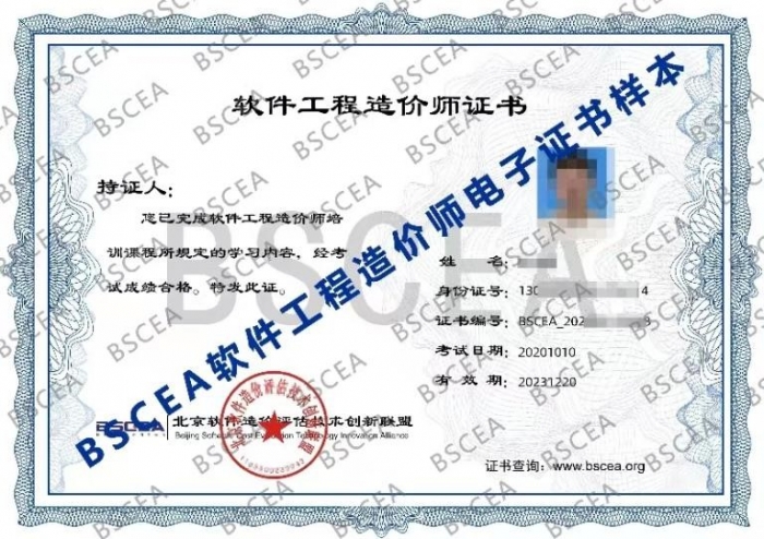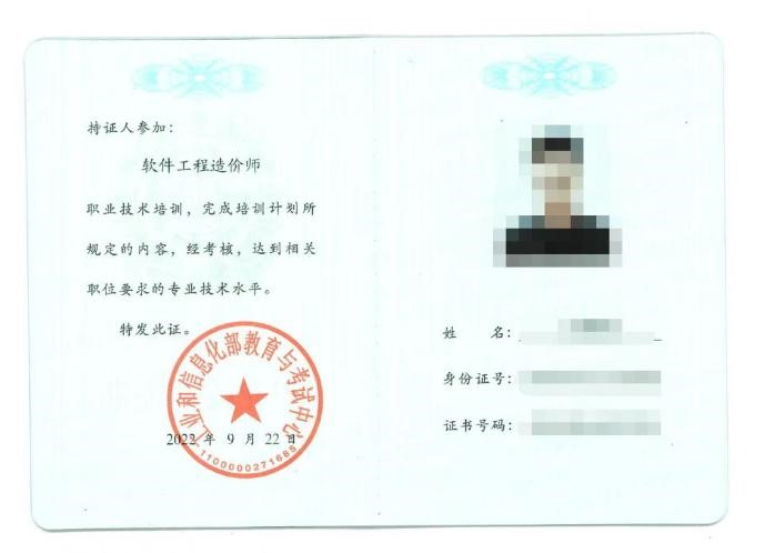 经考试所有科目成绩合格者,获得由工业和信息化部教育与考试中心颁发及北京软件造价评估技术创新联盟联合颁发的双证书。样式如下: