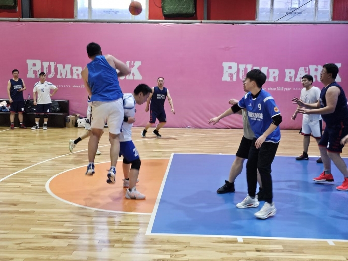 比赛当天,来自不同部门的职工代表齐聚运动馆,在热烈的气氛中,华颜涛院长发表了开场致辞,预祝运动员们展现精彩并注意安全,并对新员工的到来表示欢迎,随后宣布比赛正式开始。本次篮球赛采用红队和蓝队对抗的形式,两支队伍自由报名组成,确保了队员间新老员工比例的适中。